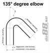 Svart 135 graders böjd reducerande silikonslang. Denna slang har olika innerdiameter i de båda ändarna. Slangen kan används till tryckapplikationer såsom turbo till intercooler samt sugapplikationer som luftfilter till insug mm. Passar även bra för att transportera kylarvätska i kylsystem.